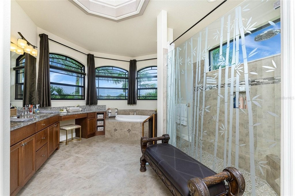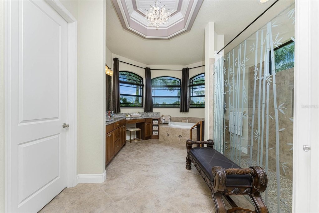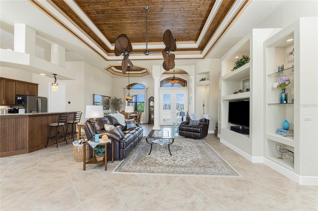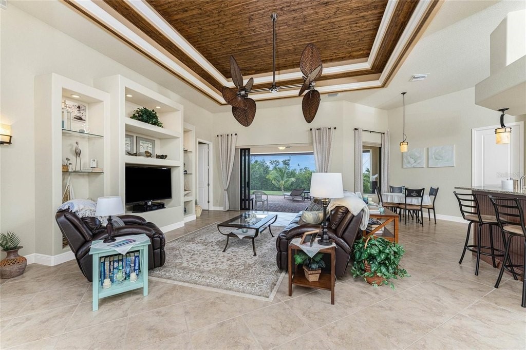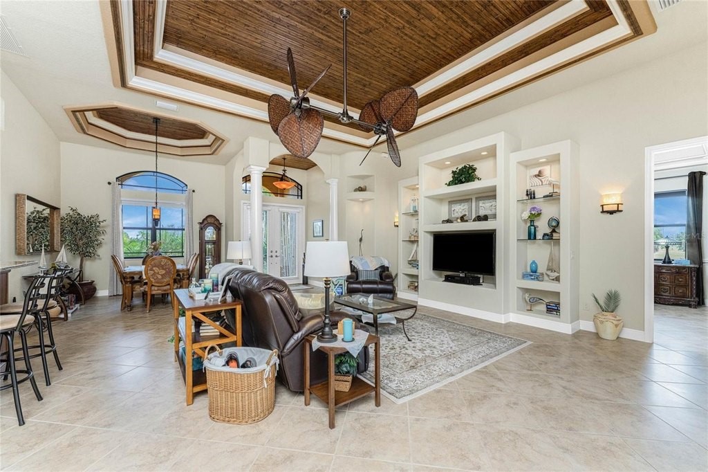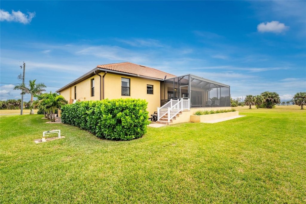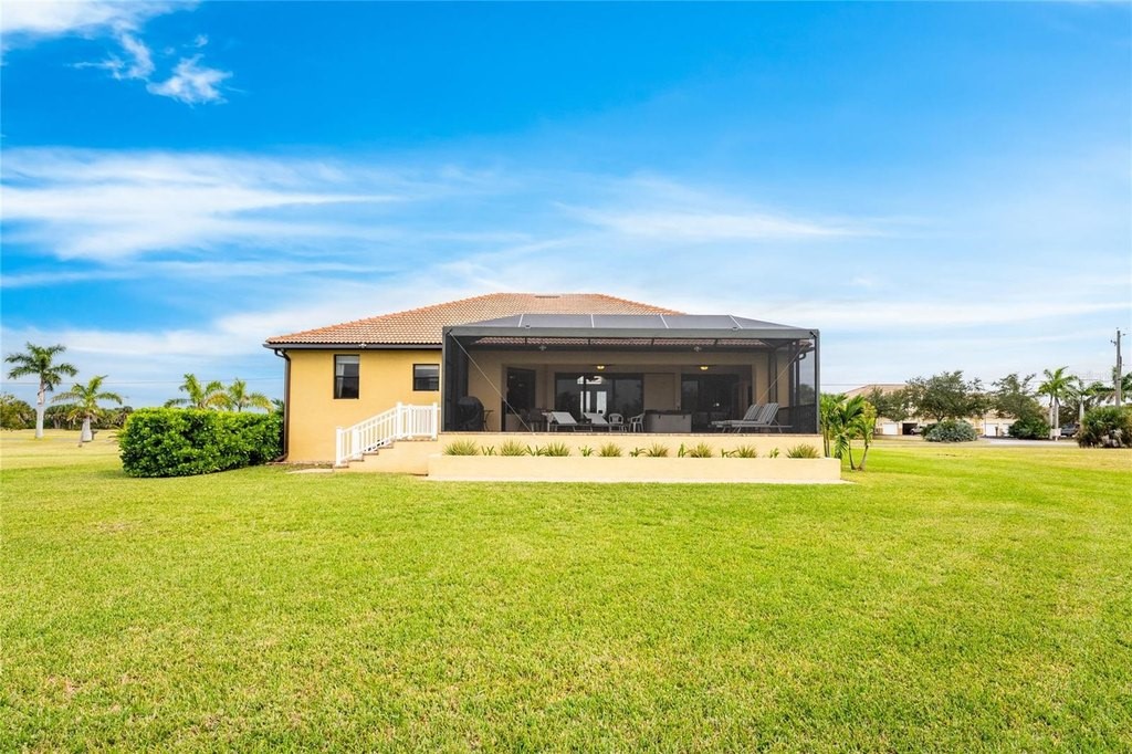 Welcome to this exceptional custom residence, where craftsmanship, architectural elegance, and refined design converge to create a timeless appeal. Perfectly situated on nearly an acre of manicured grounds, with plenty of room for a pool, this home offers the ideal combination of privacy, sophistication, and comfort. Classic curb appeal and lush landscaping set the tone. Through etched glass French doors topped with a transom window, you enter a grand foyer of architectural beauty. Decorative columns frame the open Great Room—a breathtaking space for both entertaining and relaxed living. The Great Room features 14’–16’ custom double tray wainscot ceilings with crown molding, Fanimation ceiling fan, and 8’ triple sliding glass doors that fill the space with natural light and open to the lanai. The private, park-like setting beyond offers lush landscaping and mature palms, creating a tranquil backdrop. Throughout the home, 8’ doors and detailed trim add to the quality finishes. The gourmet kitchen is a chef’s delight—beautiful and functional with granite countertops, tumbled stone backsplash, and 42” wood cabinetry providing abundant storage. The GAS STOVE and GE fingerprint-resistant stainless-steel appliances make cooking a pleasure. A spacious breakfast bar with pendant lighting invites casual dining, while the full-wall 11’ x 7’ pantry adds both charm and organization. The adjacent dining area, bathed in natural light, is perfect for everyday meals or formal occasions. The Primary Suite offers a serene retreat with a custom wainscot ceiling, crown molding, chair rail, and dual walk-in closets. The spa-inspired ensuite bath features dual sinks, a built-in dressing table, soaking tub framed by three arched windows, and a step-in shower with bamboo-etched glass and a built-in seat. The guest wing includes two spacious bedrooms with 10’ ceilings and 8’ doors, plus a beautifully appointed bath with granite vanity, linen closet, and a large walk-in shower. Outdoor living is accentuated, offering an expansive covered lanai and paver deck, fine mesh solar screen cage with a picture window screen that really lets you take in the manicured backyard. Ceiling fans and drop-down sunshades make this the perfect spot for morning coffee and evening relaxation. The backyard includes a built-in planter and a paver walkway. Additional features include hurricane impact windows and doors, a deep garage with 13’ high ceiling and 9’ high door and epoxy floor, 2020 5-ton variable-speed A/C, and an irrigation well servicing both lots. From the meticulous craftsmanship to the thoughtful layout, this home perfectly embodies excellence—offering a luxurious yet livable Florida lifestyle. Burnt Store Lakes residents enjoy public water/sewer, a community park with covered picnic areas, playground, and restrooms, plus a kayak ramp accessing Charlotte Harbor and its incredible wildlife—manatees, porpoises, sea turtles, and abundant game fish. Adjacent Burnt Store Marina offers a full-service deep-water marina, restaurants open to the public, golf, and optional dockage. Just a short drive to Downtown Punta Gorda or Cape Coral, this location provides the best of Southwest Florida living. Experience the perfect blend of luxury, comfort, and natural beauty—this is Florida living at its finest.